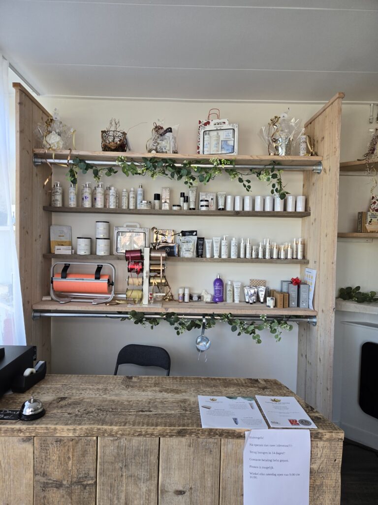 In de salon kunt u voor een leuke prijs een behandeling plannen, en er zijn betaalbare producten te koop. Verzorgende producten en parfum.